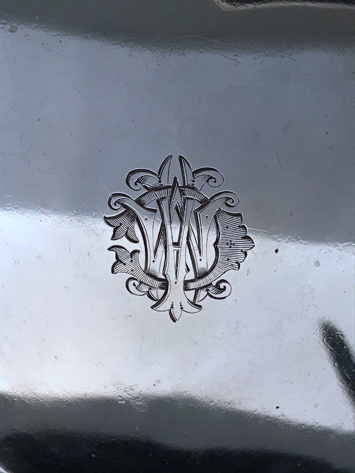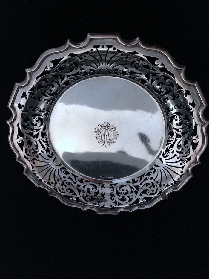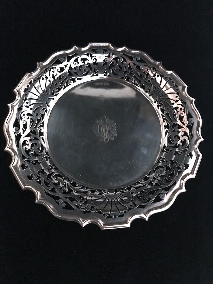 ロンドンにて購入のアンティークです。シェフィールドのWALKER & HALL、1903年製シルバーコンポートです。H6.5cm W21cm 重さ385gほどです。刻印のそばに後から文字が刻まれていますので写真でご確認ください。